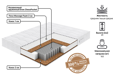 Матрас Anatomic Duo Pro 80 х 200 Выше среднего с пружинным блоком