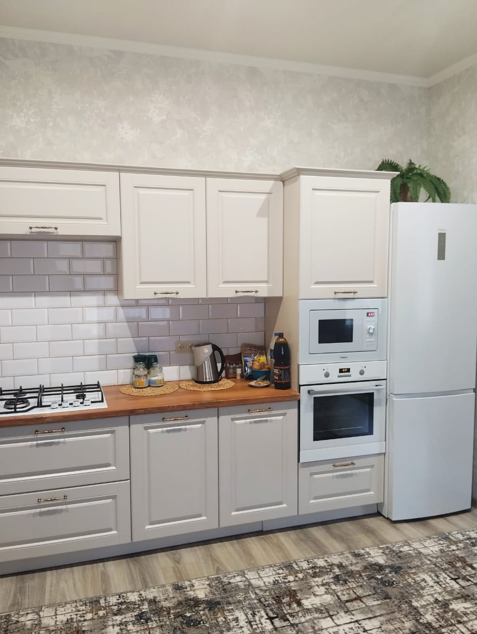 Французская элегантность вкупе со сдержанным дизайном подойдут для создания кухни в стиле прованс, модерн или кантри. Вместительные шкафы декорированы пилястрами, карнизами, патинированными филенками. За стеклянными фасадами с расстекловкой можно расположить красивую посуду, дорогое вино или необычный декор. Распределение раковины и варочной панели по разным сторонам помещения дает возможность создать полноценный рабочий треугольник. Обилие ящиков, отсеков, отделений, шкафов различной ширины и глубины позволяет разместить все необходимое. Петли и направляющие снабжены доводчиками, что обеспечивает тихий и плавный ход выдвижных и распашных механизмов.
