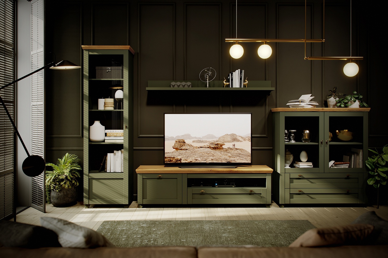 - Шкаф низкий с рамочными фасадами и двумя выдвижными ящиками;
