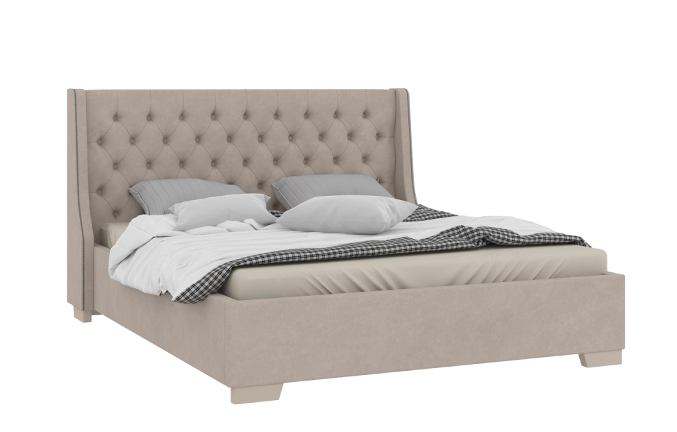 Роскошное постельное ложе с мягким изголовьем подойдет для спальни в стиле сканди, кантри или классика. Элегантность изделию придает изысканная каретная стяжка с пуговицами, обтянутыми тканью в цвет основной отделке. Плавные линии выступающих элементов спинки гармонируют с массивными опорами из буковой древесины. Стильная обивка из велюра оттенка «кашемир серый» имеет уникальное MGT-покрытие, защищающее кровать от пыли и грязи. Износостойкий материал обладает нежнейшей текстурой Extra Soft Touch с толщиной ворса, приближенной к параметрам натурального шелкового волокна.