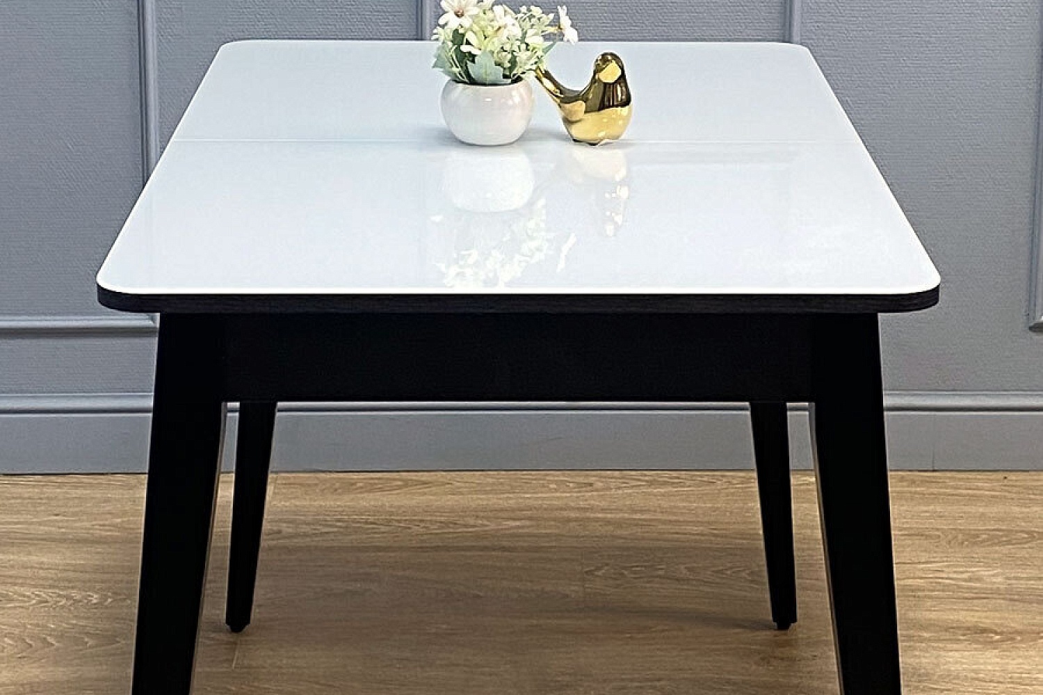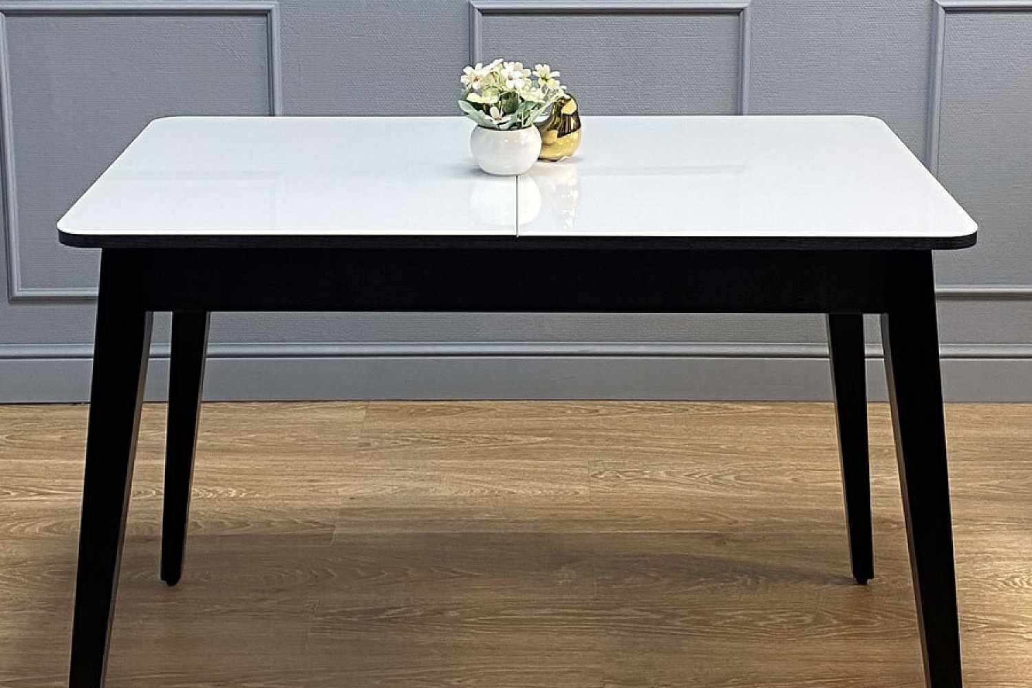 Размер стола компактный и в то же время достаточно вместительный для ежедневного использования 4 человек, по каждой стороне достаточно места чтобы поставить 4 широких стула вокруг стола; механизм раздвижения со стеклянной вставкой позволяет комфортно посадить еще 2 гостей. Компактный и очень функциональный стол, идеален для использования как на небольшой кухне, так и в качестве уютной обеденной зоны в гостиной.