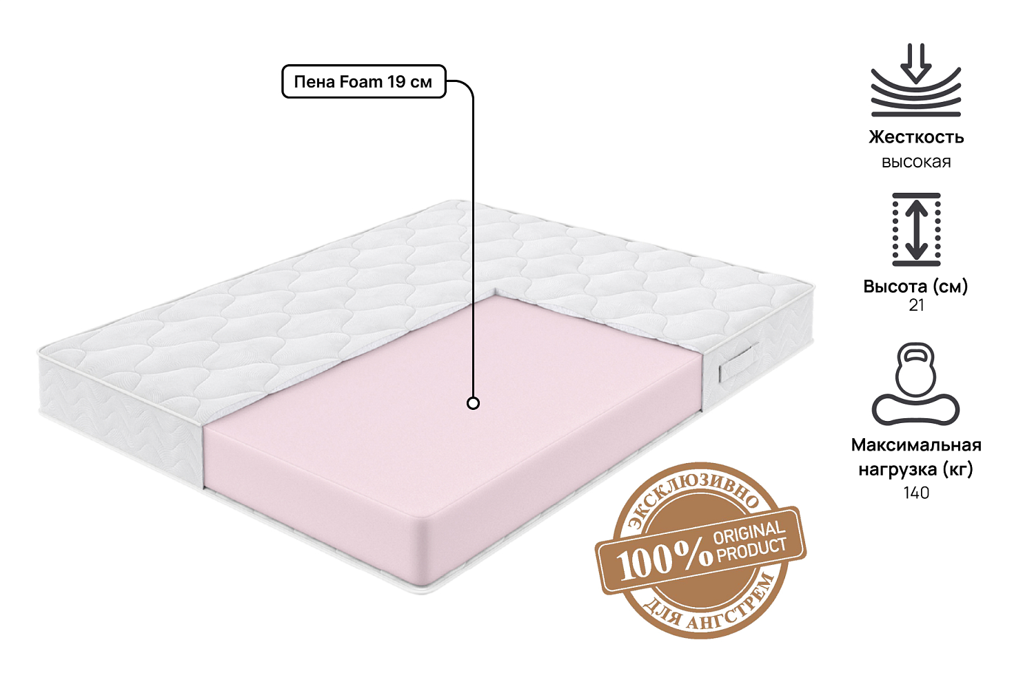 Матрас Silver двусторонний, изготовлен на основе монолитного блока из гипоаллергенного, влагоустойчивого и долговечного материала Foam. Благодаря высокой степени упругости обеспечивает идеальный анатомический эффект. Чехол изготавливается из дышащего трикотажа, простеганного на синтепоне. Для удобства транспортировки матрас скручен в рулон и помещен в вакуумную упаковку. После распаковки полностью восстанавливает свою форму в течение суток.
