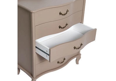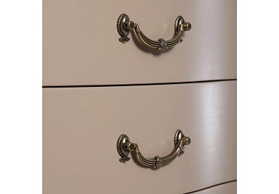 Столешница полукруглой формы выполнена из прочного, износостойкого МДФ, основание — из натуральной древесины. Лакированное глянцевое покрытие смотрится изысканно и благородно, фигурные ножки подчеркивают элегантность изделия. Широкий выдвижной ящик снабжен точечной круглой ручкой, декорированной «под золото».